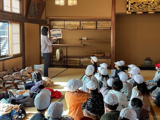 3年生「市立枚方宿 鍵屋資料館」見学(2) 公開日 2026/02/12 更新日 2026/02/12 学校の様子 市立枚方宿鍵屋資料館の敷地には、約200年前の建築物の「主屋」と2階建ての約90年前の建築物「別棟」の2つの建物があります。まずは、全員で別棟の2階でスタッフさんのお話を聞きました。鍵屋がどのような商売をしていたのか、目の前の道路は昔は淀川だったことなど教えていただきました。 いいね(0)