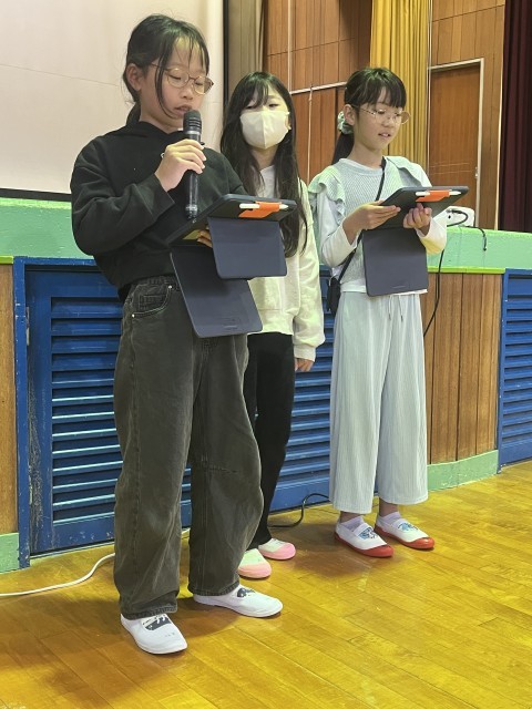 今日は今年度最後の児童集会でした。最後の最後まで主役は子ども!自分たちで司会進行し、代表委員会と児童会本部からよりよい学校生活と異学年交流の呼びかけがありました。司会も発表もずいぶん上手になりましたね。この1年の成長の大きさを感じます。