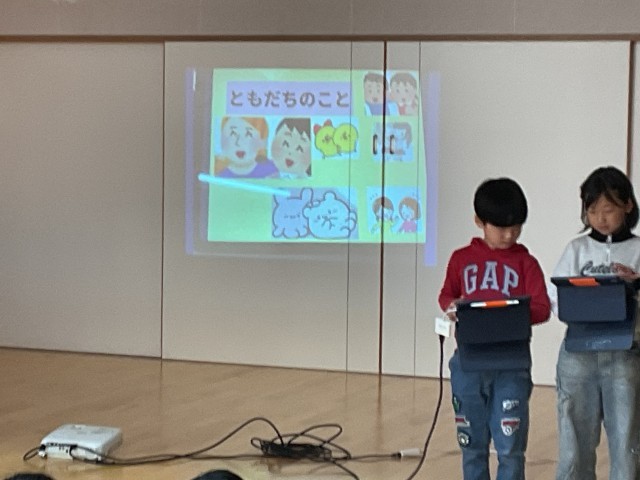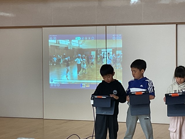 自分たちが今年度経験した学校行事について動画を使い、楽しかった思い出を伝えました。