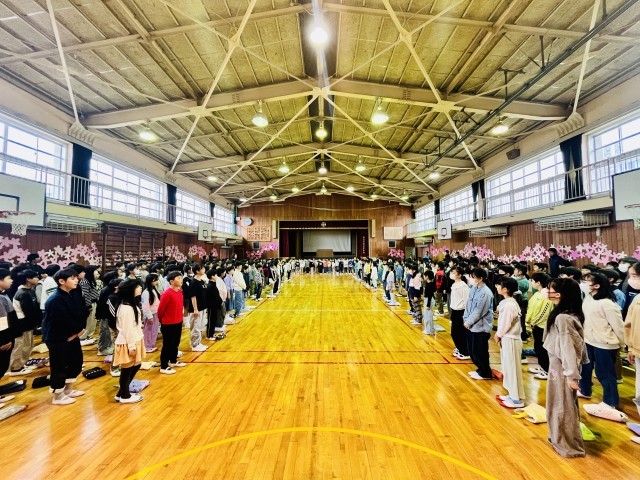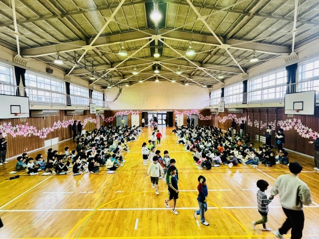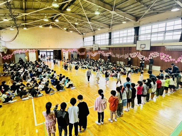 令和8年度対面式(1) 公開日 2026/04/10 更新日 2026/04/10 学校の様子 今年度、初めて全学年が体育館に集いました。1年生と2〜6年生の対面式です。緊張した面持ちで入場する1年生をあたたかい拍手が迎え入れました。 いいね(0)