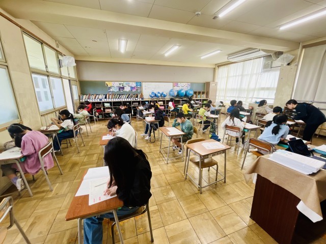 昨日の全国学力・学習状況調査に続き、本日は5年生と6年生が大阪府の「すくすくウォッチ」を受験しています。6年生は連日の受験となり、モチベーションを維持するのも難しいところですが、今日も引き続き素晴らしい緊張感で挑んでいます。また、その姿勢が5年生にも伝播して、5年生の教室にも凛とした空気感が漂っていました。5年生は初めての本格形式の受験ですが、一生懸命力を出し切ろうとする姿勢が素敵でした。