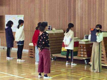 昨日の6年生音楽の授業、歌のテストでした。コロナ禍の対応と授業時数・時間の確保ということで、体育館で一斉に行っていました。iPadにそれぞれが録画し、あとでそれを先生が観て、評価するとのことでした。みんな真面目に緊張しながら録画しており、真剣さが伝わってきました。先生は放課後、一人一人の歌を聞いていました。