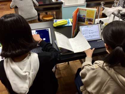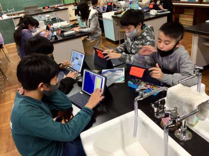 6年生理科の授業では、学習した単元の発表の準備をしていました。自分で選んだテーマの火山や地震、地層などについての発表資料をロイロノート(授業支援クラウド)で作成していました。