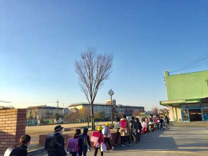 抜けるような青空のもと、本日も子どもたちは元気に登校していました。