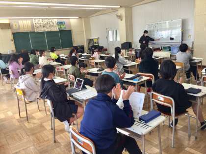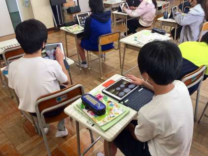 昨日、6年生の音楽の授業でiPadを使ったリズム作りの授業をしていました。本来は、言葉を使ってリズムをとり、友だちと合わせるのですが、今はできません。そこで、iPadにあるGarageBandというアプリを使い、リズム作りをしていました。個性的な作曲もあり、楽しそうに活動していました。