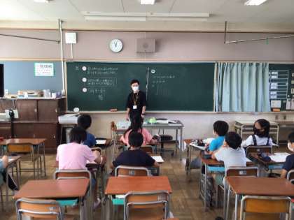 5年生の算数では、「分母をそろえて計算する」ことを目標に、分数の学習に取り組んでいました。少人数での学習で、これまでに学んだことをもとに、計算方法を考えていました。