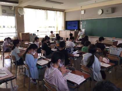 6年生の理科「大地のつくりと変化」では、個々に興味を持った内容を自分で調べて学びを深め、一人ひとり発表していました。聞く姿勢もとても良く、感想や新たな学びを記入していました。
