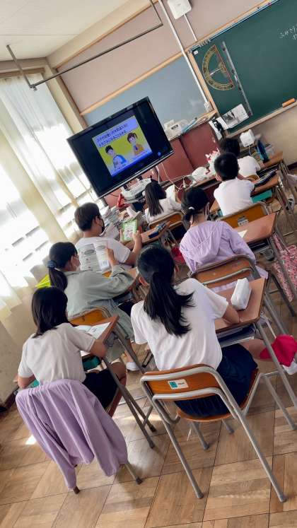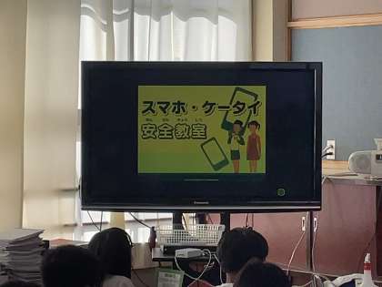 5、6年生が、オンラインで、スマートフォンやケータイの適切な使い方ができるよう「スマホ・ケータイ安全教室」を実施しました。神妙な面持ちで講師の先生の話を聞いていました。
