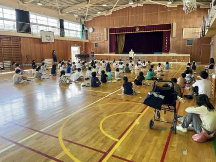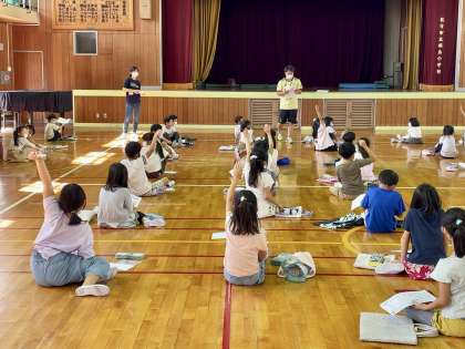 2年生が、来週の校外学習についての集会を行っていました。目的や注意することなどを確認していました。しおりをご家庭でもご覧ください。