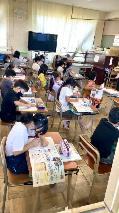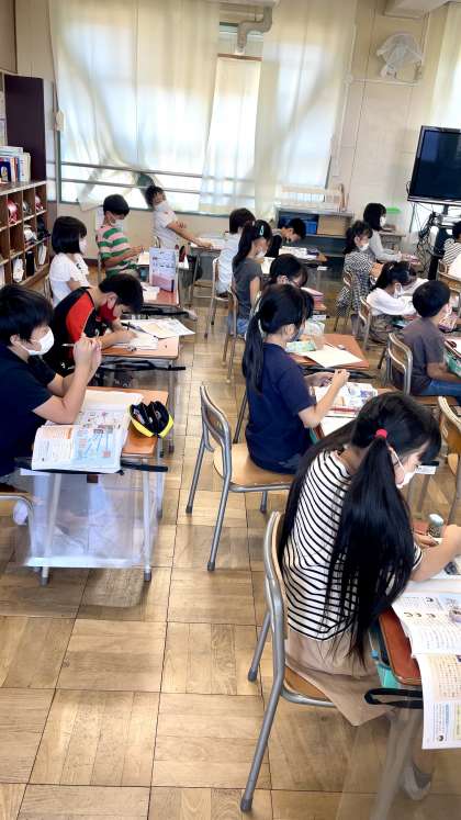 3年生は社会の授業で、消防について学習していました。119番の電話のしくみについて、みんなで考えたり、ノートを取ったりしていました。