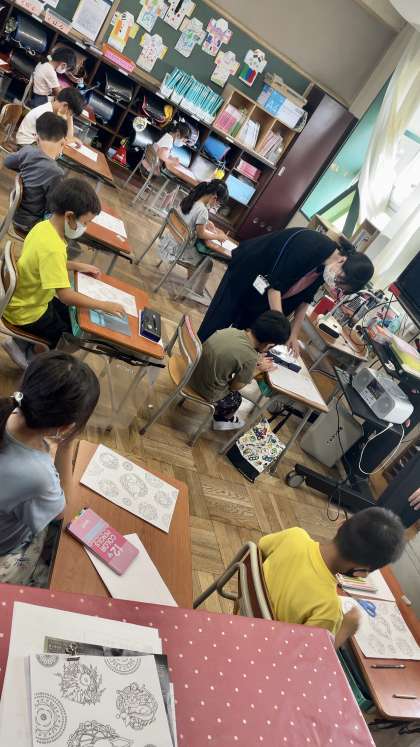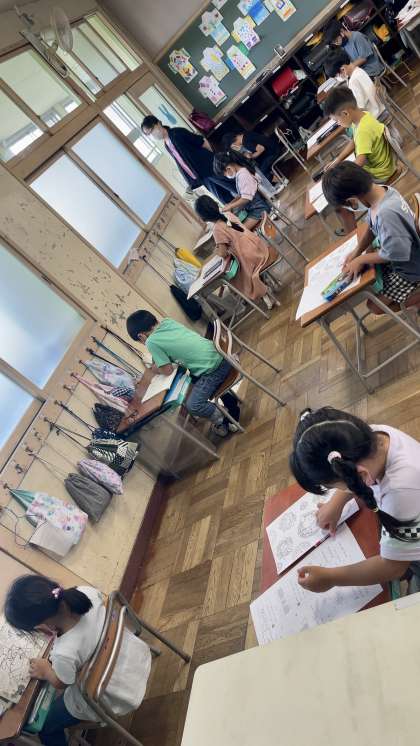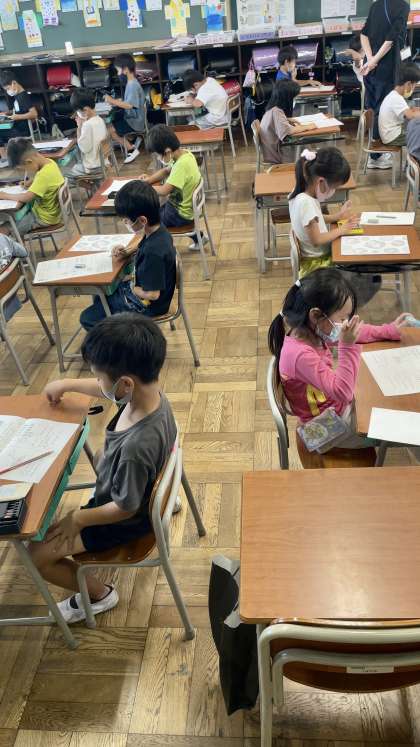 1年生算数は、テストでした。上級生と同じようにテストの形にし、真剣に受けていました。