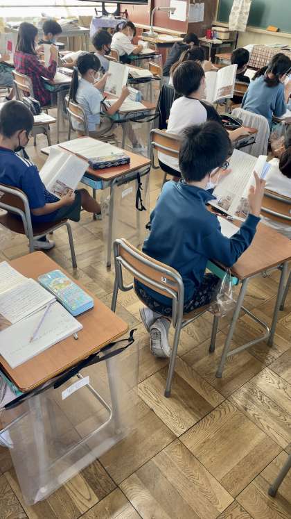 4年生国語の授業では、「くらしの和と洋」という単元の本読みなどをし、先生の発問に答えていました。
