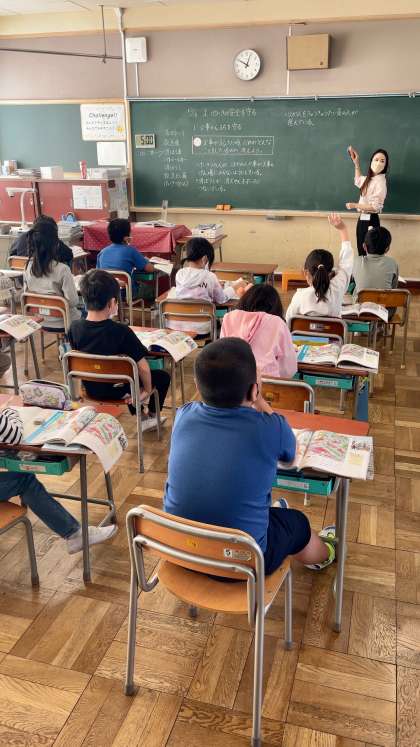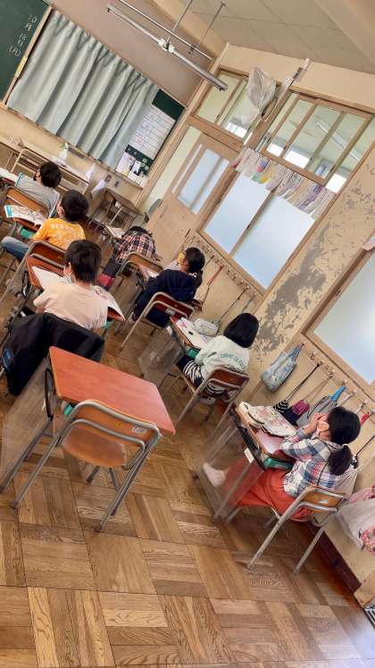 3年生社会の授業では、「地域の安全を守る」学習で、教科書の火事の絵を見て、火事の時にだれが、どんなことをしているのか考えていました。