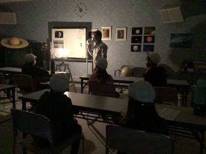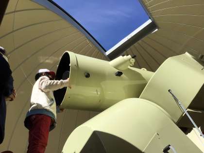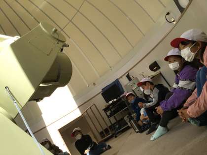大きな天体望遠鏡を見せてもらいました。夜にはたくさんの星が見えるそうです。