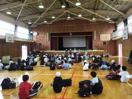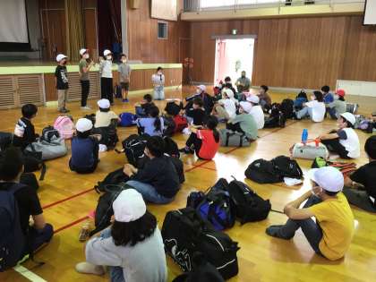 全ての行程を終え、学校へ帰ってきました。体育館に集まり、最後の帰校式です。さすがに疲れた様子も見られましたが、2日間、子ども達は本当によくがんばり、とても楽しく充実したキャンプでした。そして2日間の閲覧もありがとうございました。