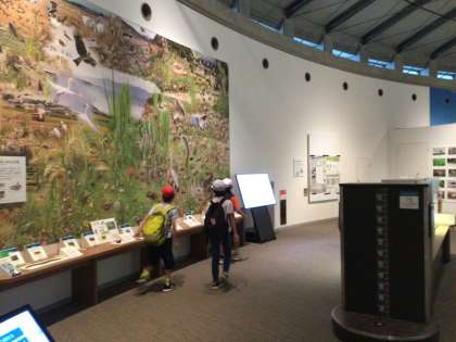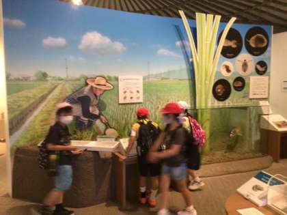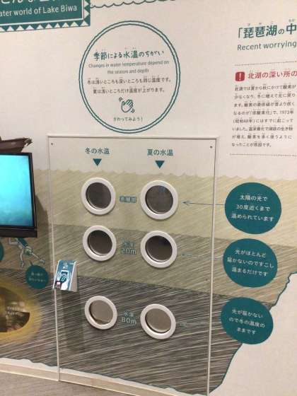 琵琶湖の生態系。長いミミズの模型に絶叫!