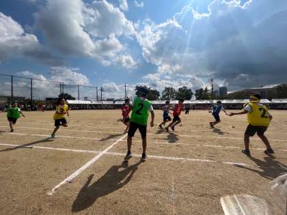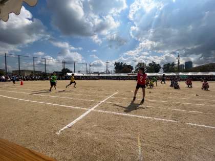 リレー種目は運動会の花形。どのレースも互いに一歩も譲りません!