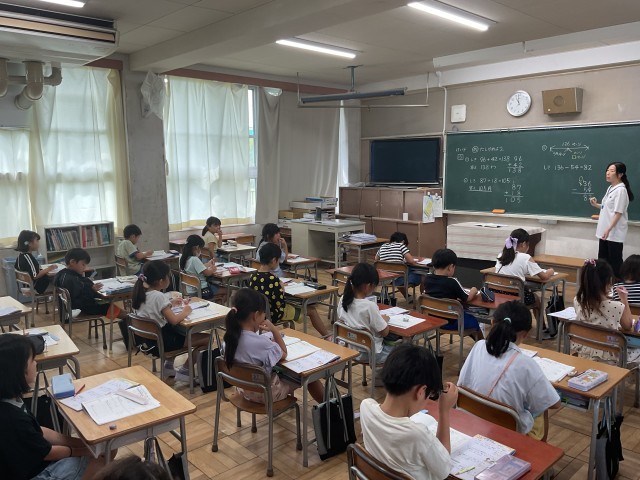 まずは、計算ドリルを使って基本の足し算・引き算をしっかりと確認。繰り返し練習することで、計算のスピードや正確さがぐんとアップしています。子どもたちは「できた!」という達成感を味わいながら、意欲的に取り組んでいました。