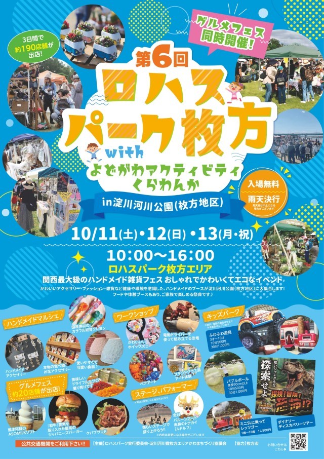 令和7年10月11日(土)から13日(月・祝)に淀川河川公園(枚方地区)にて「第6回ロハスパーク枚方withよどがわアクティビティくらわんか」が開催されます。