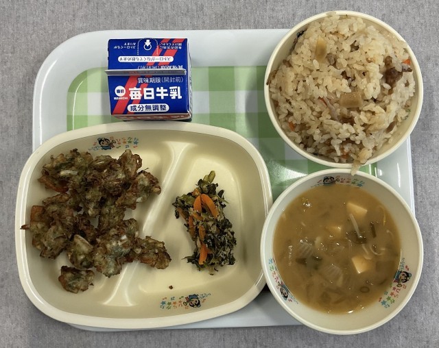 そして今日の給食には、大阪のソウルフード「お好み焼き」にちなんだ「お好み揚げ」が登場しました。キャベツや紅しょうがなど、具材の風味がしっかり感じられる一品で、子どもたちにも大人気でした。