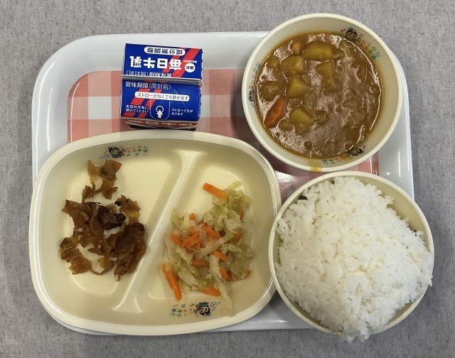 今日の給食は、みんなの大好きなチキンカレーでした。