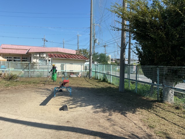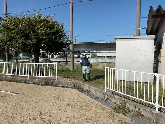 運動会を目前に控え、今朝は校務員さんが早い時間から中庭や校庭の草刈りをしてくださいました。子どもたちが気持ちよく過ごせるよう、環境が整えられています。