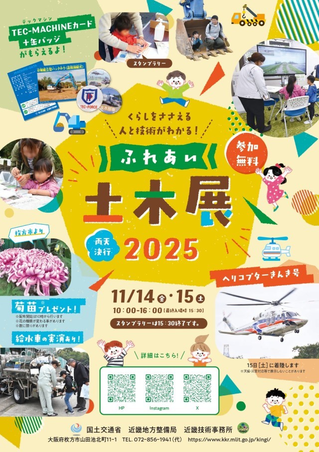 国土交通省近畿技術事務所では、毎年、子どもから大人まで幅広い方に土木技術に触れる機会を提供し、土木に対する理解を深めていただくことを目的として毎年「ふれあい土木展」を開催しています。
