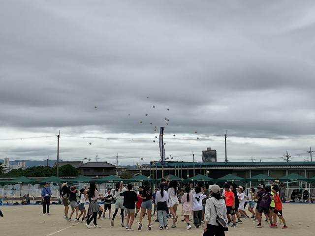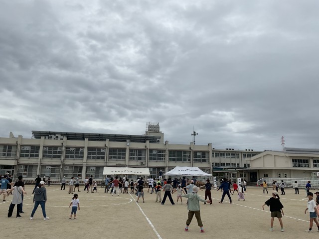 さだ西小学校の児童はもちろん、卒業生の中学生・高校生、地域の皆さま、そして先生も多数参加され、曇り空を吹き飛ばすような元気いっぱいの声と笑顔が校庭に広がっていました。