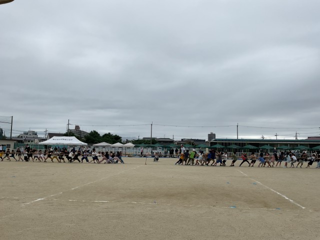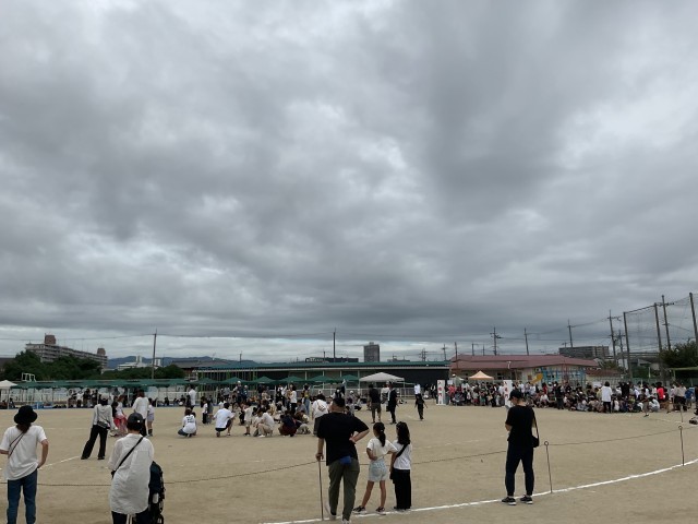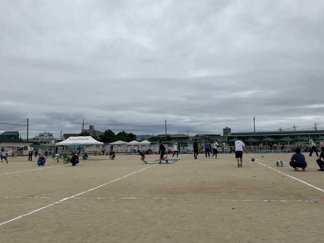本日、さだ西小学校区 区民体育祭が開催されました。空は一日中どんよりとした曇り空で、抽選会のときは雨が強くなりましたが、競技中はほとんど雨に降られることもなく、無事に全競技を終えることができました。