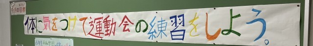また、先日もお伝えしましたが、今月の月目標は 「体に気をつけて運動会の練習をしよう。」です。子どもたちは、疲れが出始める時期です。暑さや疲れに気をつけながら、こまめに水分をとり、休憩をはさみながら練習に取り組んでいます。ご家庭でも様子を見てあげてください。
