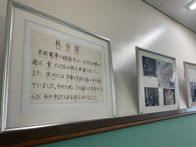 「ごんぼじる」は、江戸時代に淀川を行き来していた三十石船の乗客に、酒や食事を売っていた「くらわんか船」で提供されていた料理です。「酒、くらわんか。ごんぼ汁、くらわんか。」と威勢よく声をかけていた様子は、当時の活気ある枚方宿の風景を思い起こさせます。学校にも「枚方宿」の写真が掲示されており、子どもたちは食事を通して歴史にも触れることができます。