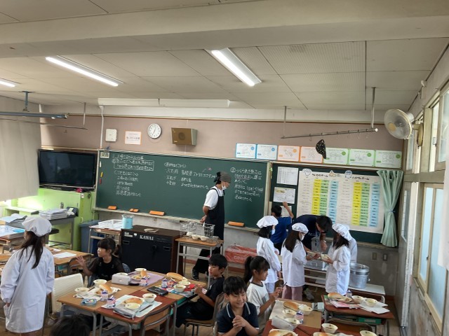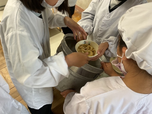 先週の郷土料理「くるみもり」も大好評でした。鮮やかな黄緑色のあんこは枝豆を使っています。校長先生も「くるみもり」が大好物です。放送でも栄養教諭の先生や放送委員会、給食当番さんが「今日の給食」について、話をしてくれます。これからも、給食を通して「食べることの楽しさ」と「地域の魅力」を伝えていってほしいと思います。