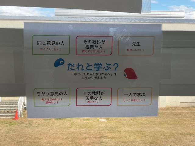 6年生の自己調整学習を紹介しましたが、3年生の廊下に「だれと学ぶ?」が掲示していました。どの学年も意識して学習に取り組めることだと思います。意識して取り組めたら、さらに学びを深めることができますね。