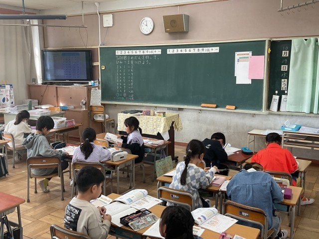 また、隣のクラスでは、掛け算を使った計算プリントに挑戦していました。問題を工夫して解くことで、掛け算の使い方や便利さを実感することができたようです。
