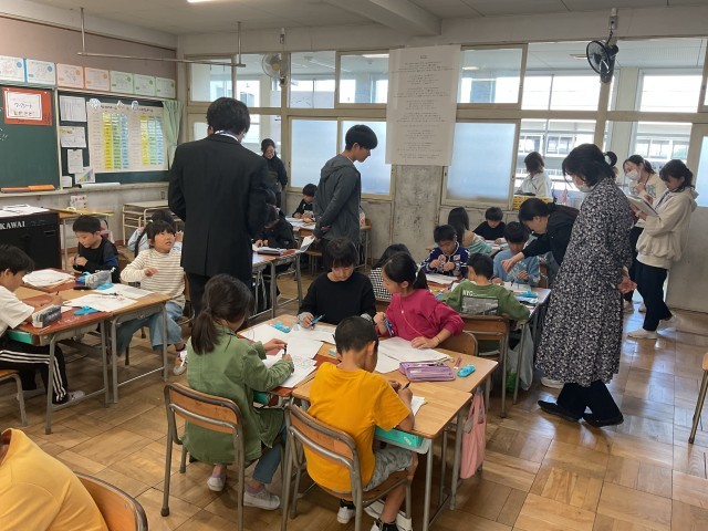 今週、教育実習生の先生が1か月間の実習を終えました。算数「円と球」の単元で研究授業を行い、たくさんの先生方が参観・研究協議に参加されました。