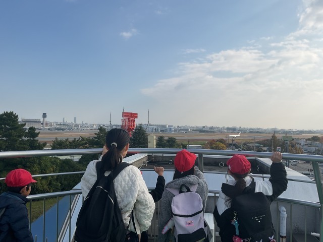 屋上展望台からは、飛行機が離陸するところなどが間近に見え、子どもたちは