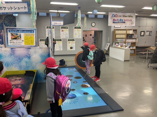 館内では特別展示コーナーを見学。科学の不思議に触れながら、楽しみ姿が印象的でした。ロケットが飛ぶ原理、宇宙のこと、釣りをして遊べるコーナーもありました。「月食 日食!」「初めて見た!」と、学びと発見、楽しみの連続でした。