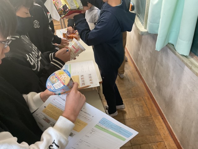 昨日、家庭科の様子をお知らせしましたが、隣のクラスでは、「エシカル消費コンシェルジュ」として、自分ならどの即席めんを買うのか、様々な観点から考えていました。