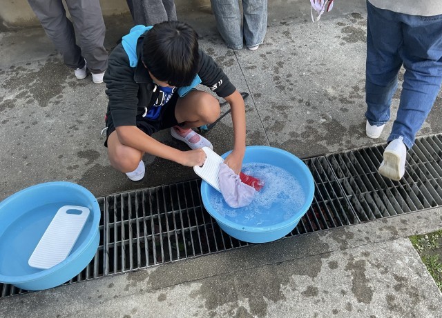 子どもたちは「洗濯機がない時代はこうして洗っていたんだね」と驚きながらも、楽しそうに取り組んでいました。振り返りでは、実際に手を動かすことで、洗濯の大変さや工夫を実感できたことが書かれていました。