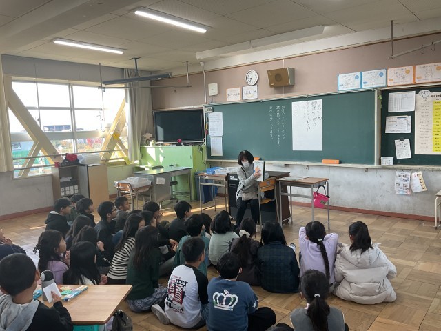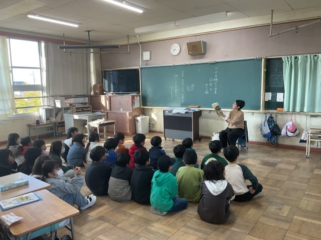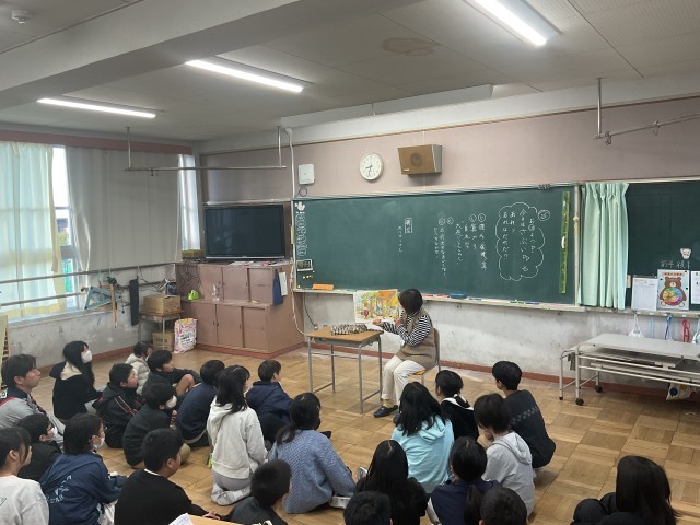 朝学習の時間、3年生と5年生の教室に「おはなしエルマー」の皆さまが来てくださり、読み聞かせをしてくださっている様子です。毎週木曜日は読書タイムですが、学期に一度の特別な時間として、エルマーさんの声で物語の世界に浸ることができます。子どもたちは目を輝かせながら物語を聞き、登場人物の気持ちを想像したり、次の展開を楽しみにしたりしていました。