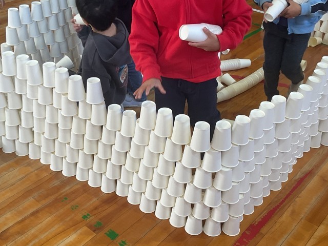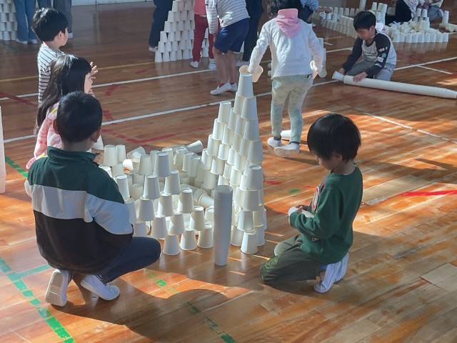 ・身近な素材(紙コップ)を使って工夫することで、創造力を伸ばす