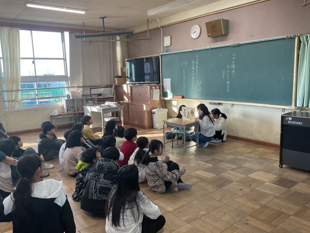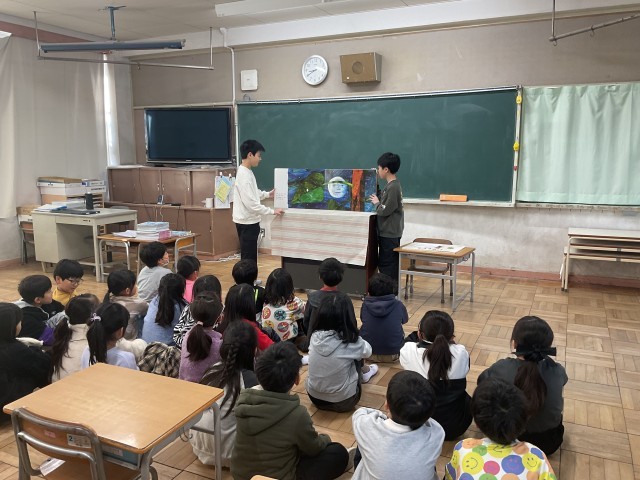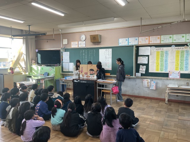 木曜日の朝読書の時間に、図書委員会による紙芝居の読み聞かせがありました。対象は1~4年生で、5・6年生の図書委員会の子どもたちが工夫しながら上手に読んでくれました。聞いていた低学年の子どもたちは集中して楽しみ、終わった後には「おもしろかった」といった感想も聞かれました。