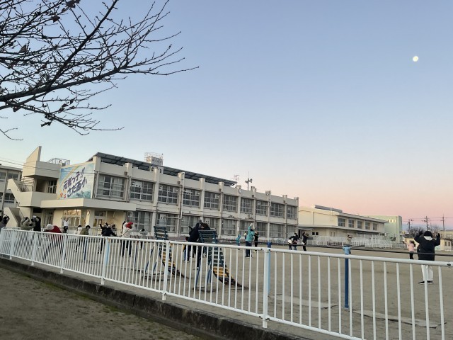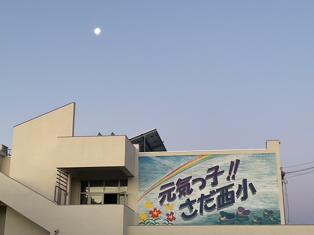今朝は、まだ空に月が残る中でのラジオ体操でした。さだ中学校の方向を見ると、ちょうど太陽が昇ってくる様子が見え、自然の移り変わりを感じながら体を動かすことで、心も体もすっきりと整ったようです。