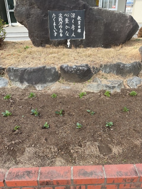 校庭の花壇には、春に向けて新しい花の苗を植えています。 まだ小さな苗ですが、暖かくなるころには色とりどりの花が咲き、子どもたちの学校生活を明るく彩ってくれることでしょう。