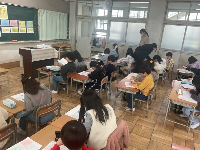 相互授業参観の一環として、国語「くらべて つたえよう」の授業を参観しました。この単元では、2つのものを観点にそって比べ、共通点や違いを整理して伝える力を育てています。子どもたちは、教科書で学んだ方法を生かしながら、意欲的に学習に取り組んでいました。1年生から系統的に学んでいます。