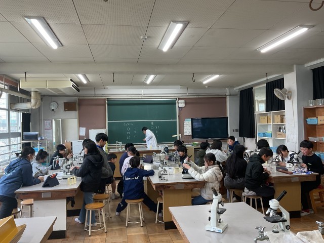 今週は、さらに一歩進んで、とけた食塩を水から取り出す実験に挑戦しました。加熱して水を蒸発させると、底に白い結晶が現れます。「とけた食塩は消えたわけではなく、水の中に広がっていただけ」ということを、実験を通して確かめました。さらに、できた結晶を顕微鏡で観察し、形の特徴をじっくり見ました。「四角い!」と、驚きの声が上がっていました。結晶の形をじっくり観察している子も多く、「キラキラしてる!」「四角い形になってる!」と、科学的な興味がどんどん広がっています。