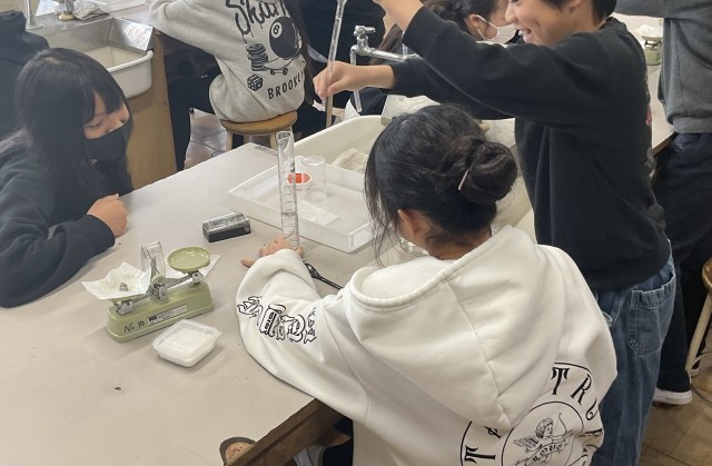 先週は、水50mL(10℃)に食塩は何gとけるのかを調べる実験を行っていました。水の量や温度をそろえ、少しずつ食塩を加えていくと、あるところで食塩がもうとけなくなります。この「限界」があるという気づきは、科学の大事な視点のひとつです。子どもたちは、「まだいける!」「あ、もう底に残ってきた!」と、目を輝かせながら観察していました。
