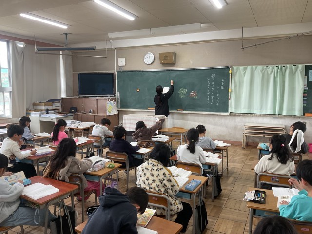 廊下には並行読書の本を並べ、物語に親しめる環境を整えています。今日から取り組むよと教えてくれました。登場人物の気持ちを想像しながら読む力を、これからも育てていきます。