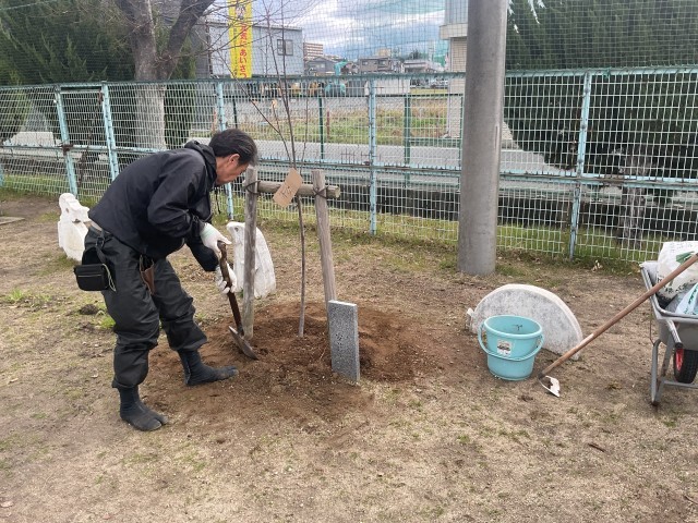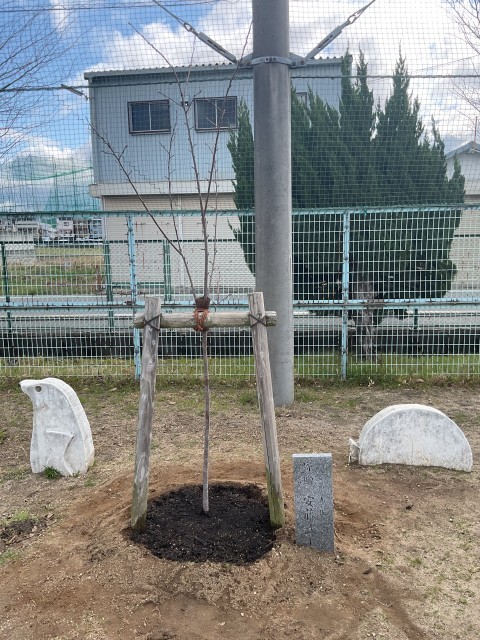 このたび、第九代校長・安藤武士先生のご家族より、桜の木とキンカンの木を寄贈していただきました。