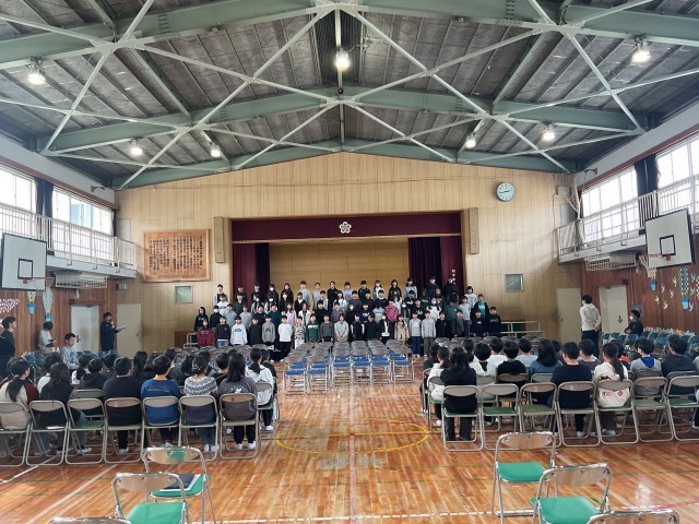 5・6年生が合同で卒業式に向けた練習が始まりました。式の流れを一つひとつ確認しながら、姿勢や動き、心の準備を整えていきました。
